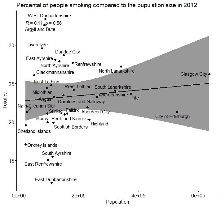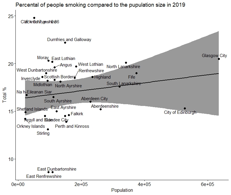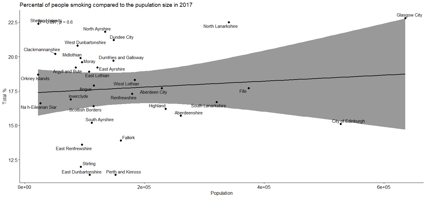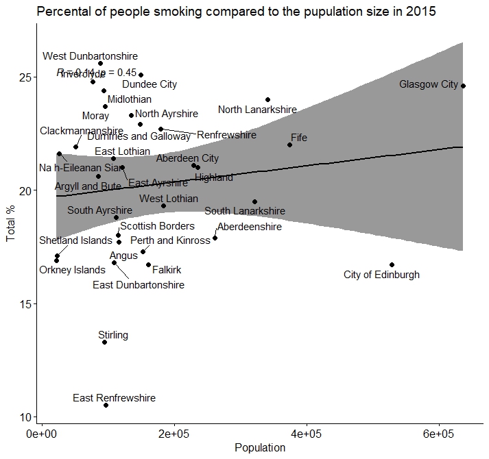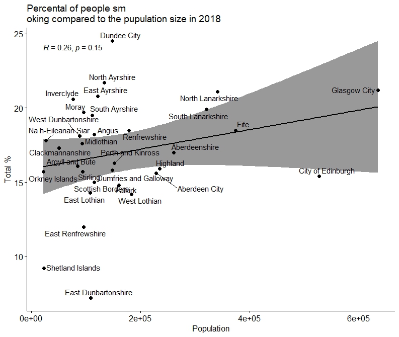 Next, we examine whether larger constituencies smoke more than smaller ones. A Pearson correlation test across constituencies initially suggested no clear relationship: