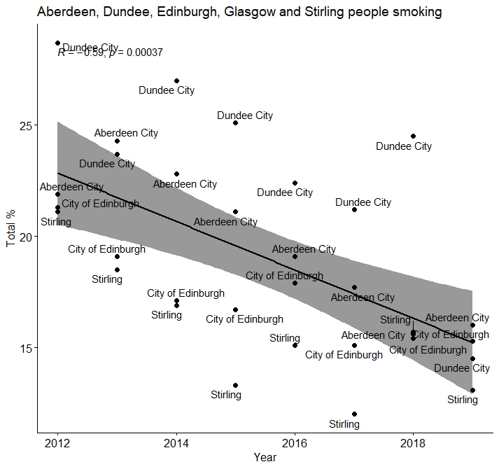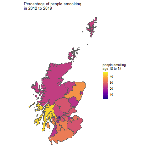 From 2012 to 2019, the Scottish Survey Core Question (SSCQ)—a project combining several large household surveys (more here)—was used to track smoking rates across Scotland.